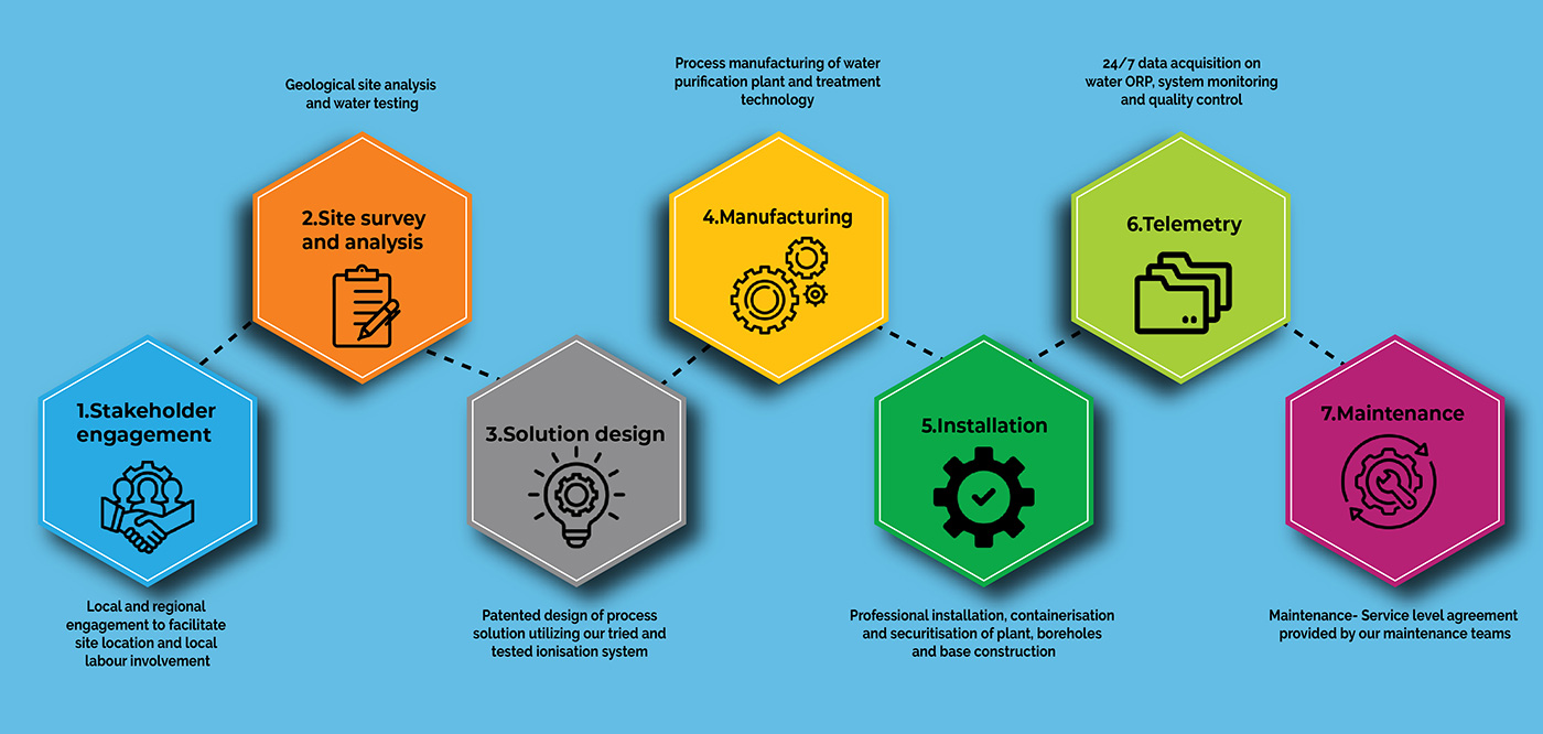 Our solar powered water purification plant and decontamination technology is a first of its kind in Mzansi, providing breakthrough innovation that directly benefits those that need it most.
